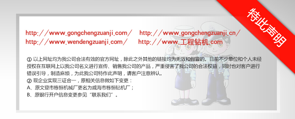 威海市棟恒鉆機(jī)廠隸屬于文登市工程鉆機(jī)廠,主要生產(chǎn)、銷售工程鉆機(jī)。它坐落于文登市西鋪頭工業(yè)園,這里科技發(fā)達(dá),交通便利,制造業(yè)集中。 自1982年建廠以來(lái),經(jīng)過(guò)多年的優(yōu)化改革和沉淀積累,擁有精密、大型加工設(shè)備近百臺(tái)的生產(chǎn)企業(yè)之一。現(xiàn)在研制成功的GJ-400、GJ-250S、GJ-250A、GJ-240S、GJ-240A、GJ-180S、GJ-180A型等鉆機(jī)。在其它產(chǎn)品上,企業(yè)建立了長(zhǎng)期、中期、短期的發(fā)展規(guī)劃,一系列的高性能產(chǎn)品正在不斷推出中,企業(yè)應(yīng)市場(chǎng)需求對(duì)系列產(chǎn)品進(jìn)行了優(yōu)化組合,開(kāi)發(fā)了與之對(duì)應(yīng)配套的三腿、四腿單天車輪、雙天車輪鉆塔;泥漿泵—BW-160Q、BW- 200Q型球形閥泥漿泵大大提高了泵的使用性能和機(jī)械效率